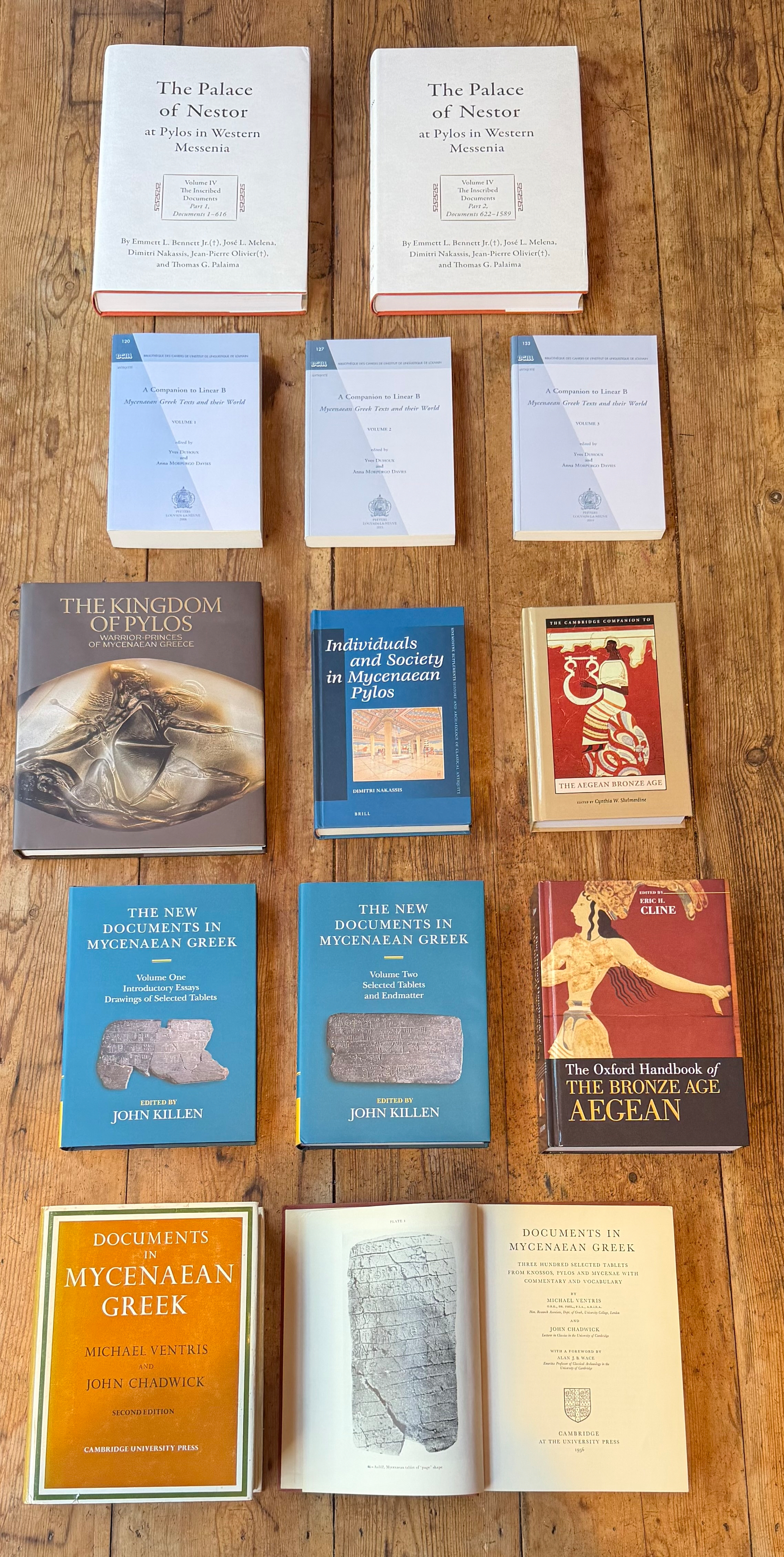 - The Palace of Nestor at Pylos in Western Messenia: Volume IV - the Inscribed Documents - Parts 1 and 2 (Bennett, Melena, Nakassis et al 2025) - A full reproduction and transcription of all of the Linear B tablets found at Pylos. The first time these have all been published.